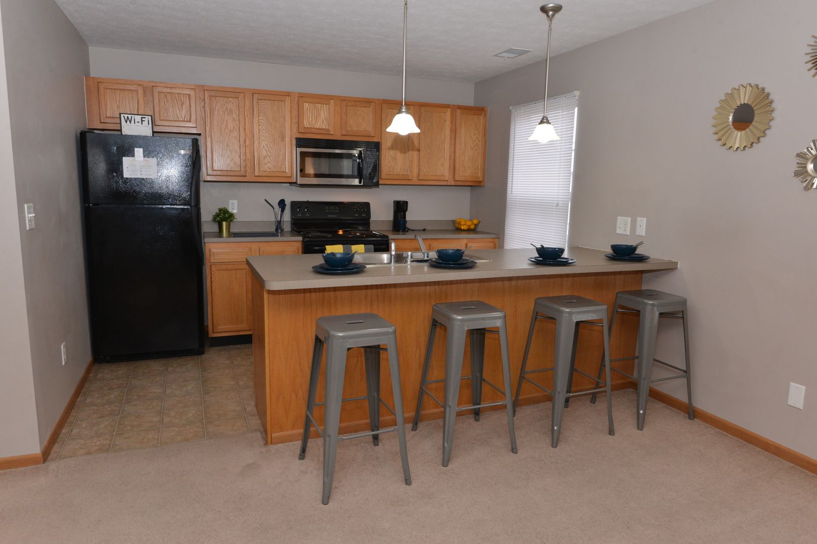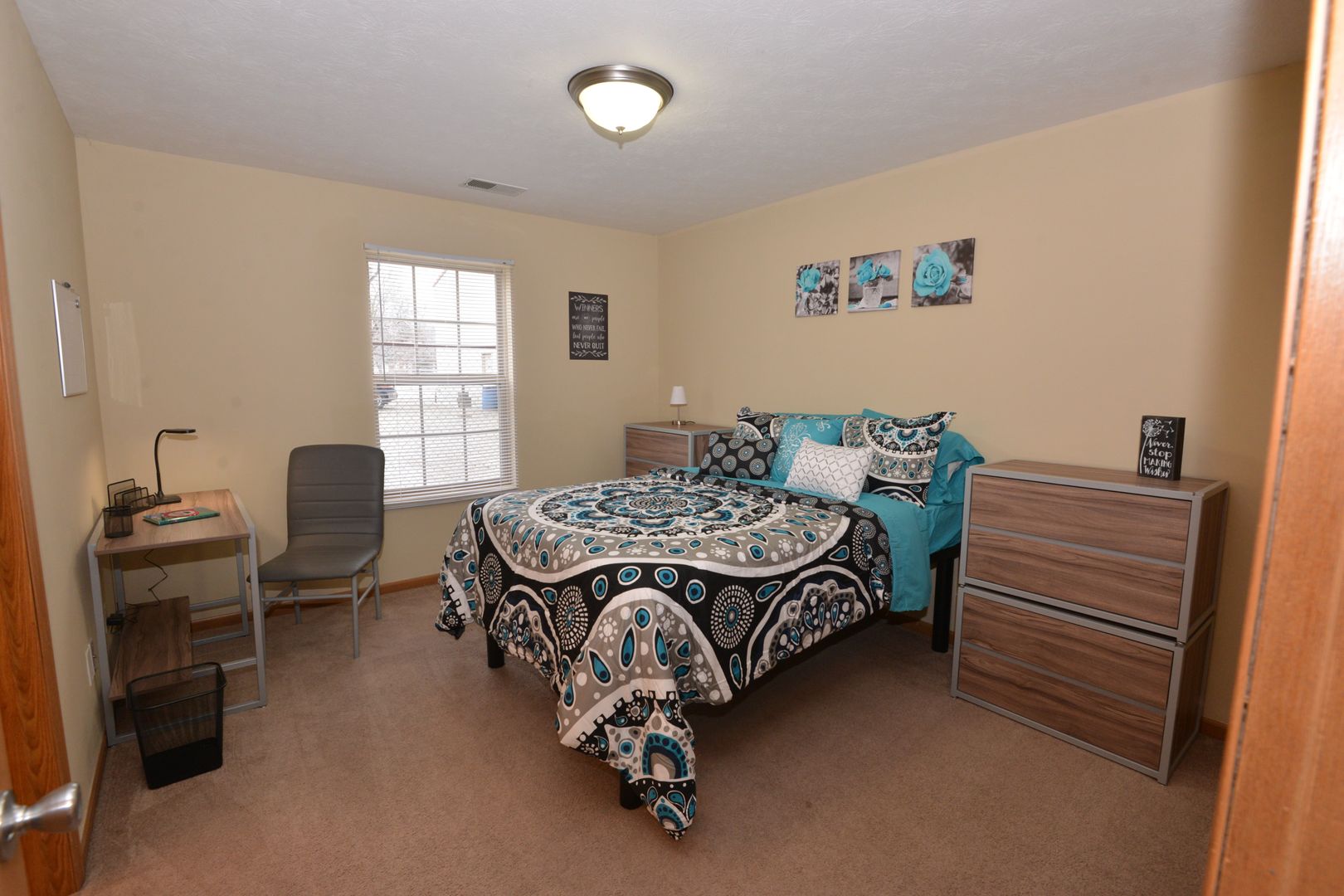 This layout features carpeting throughout and private bathrooms for each bedroom, making it ideal for roommates seeking both comfort and privacy.