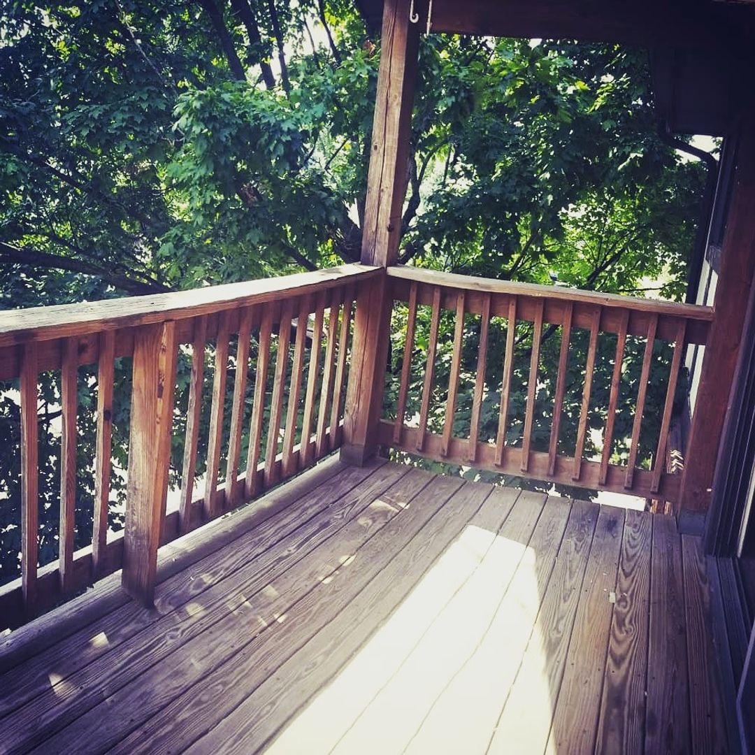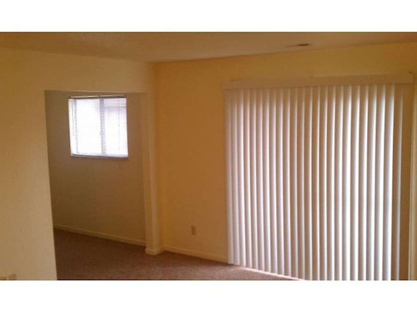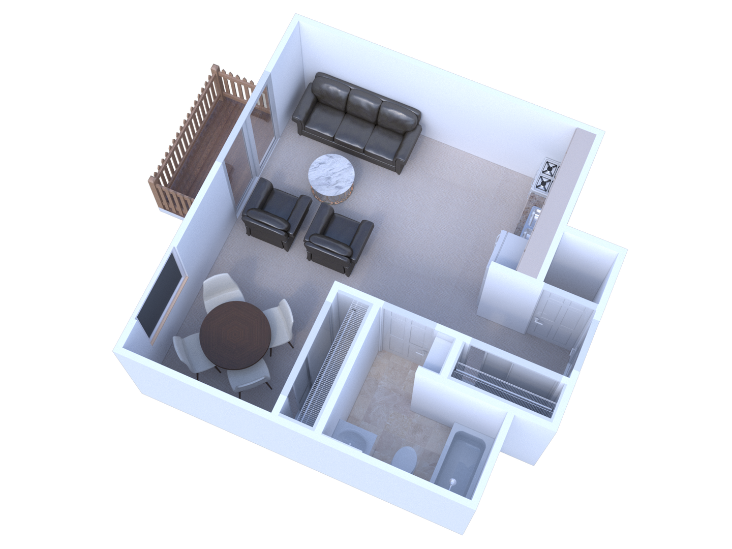 Spacious studio apartment with plenty of closet space and a private balcony.