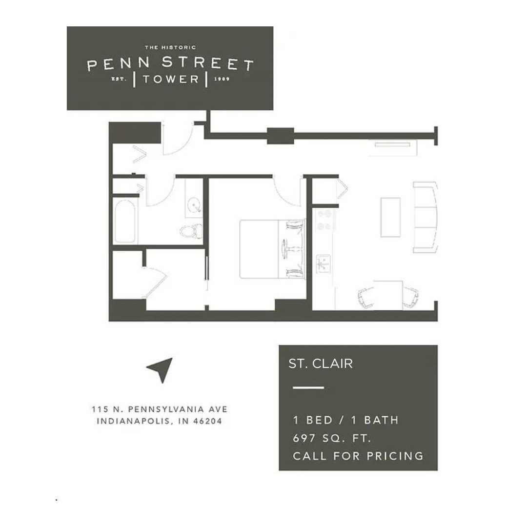 St. Clair 1 Bedroom Apartment at 115 Penn Apartments.